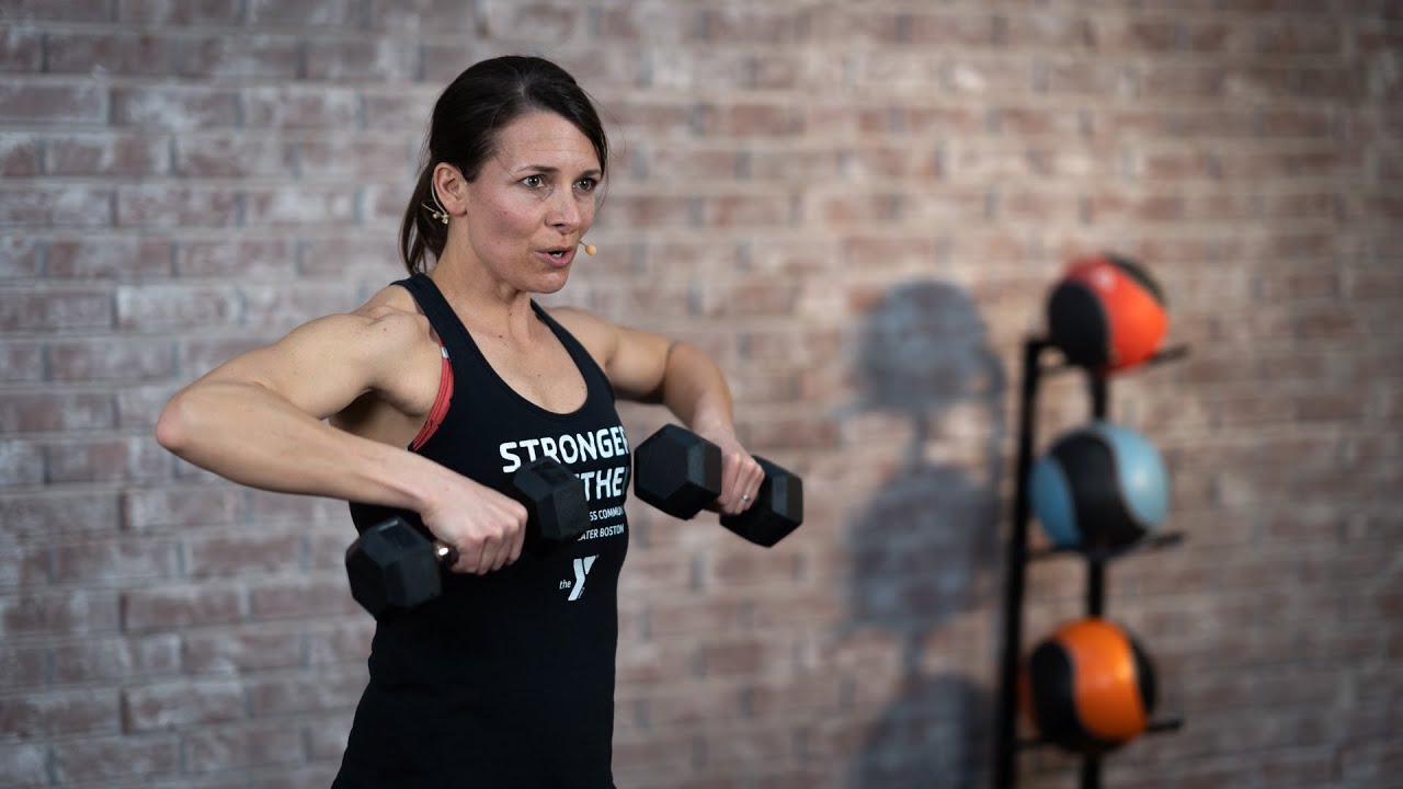 High Intensity Interval Training alternates short periods of challenging cardio and dumbbell strength exercises with less intense recovery periods. Exercises can be performed with dumbbells or with your own bodyweight. The workout is equally sequenced between weight resistance and cardio moves. Expect to work all major muscle groups and spike your heartrate during these fast paced, high energy workouts.