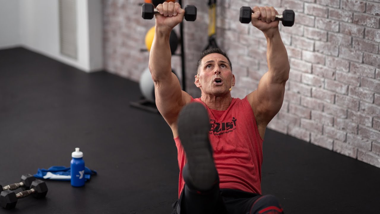 Equipment Needed: 2 PAIR OF DUMBBELLS / 1 LIGHT, 1 HEAVY ( 3-5LB LIGHT, 7-10LB HEAVY), MAT
